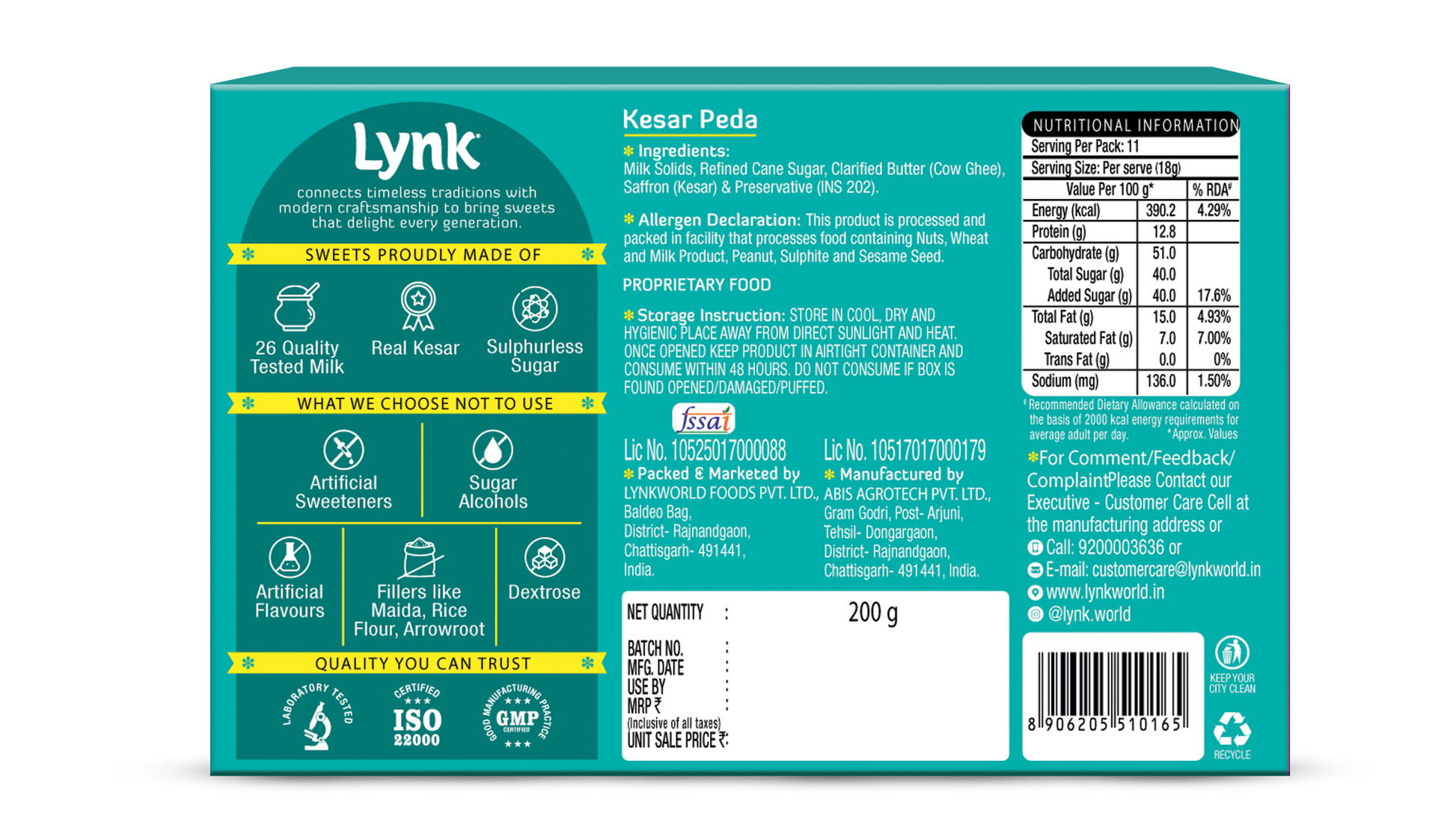 - Sizes : From personal-sized Kesar Peda 200gm boxes for everyday enjoyment to larger Kesar Peda 400gm, Peda 1kg (combo pack), Kesar Peda offers etc.
