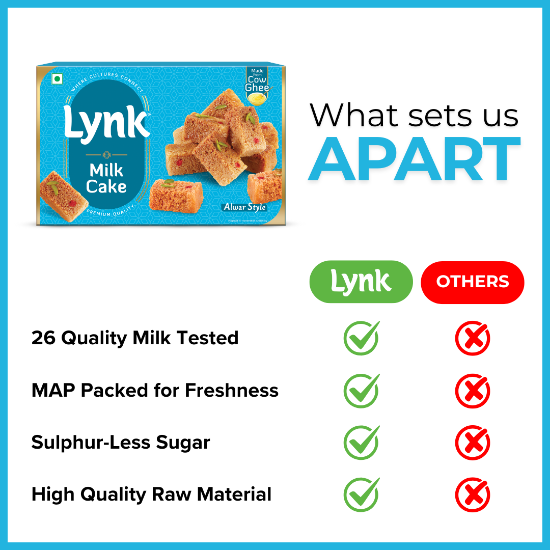 - Sizes : From personal-sized 200gm Milk Cake boxes for everyday enjoyment to larger 400gm and 1kg (combo pack) and Milk Cake offers etc.